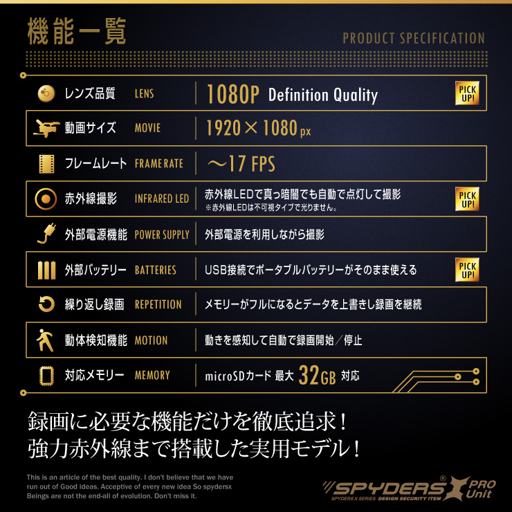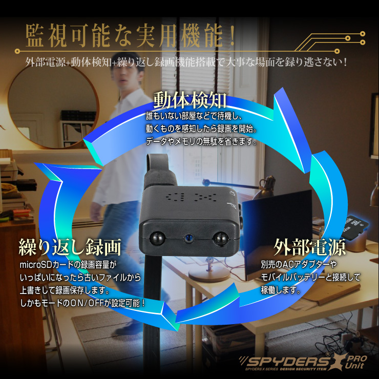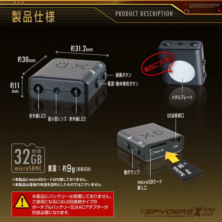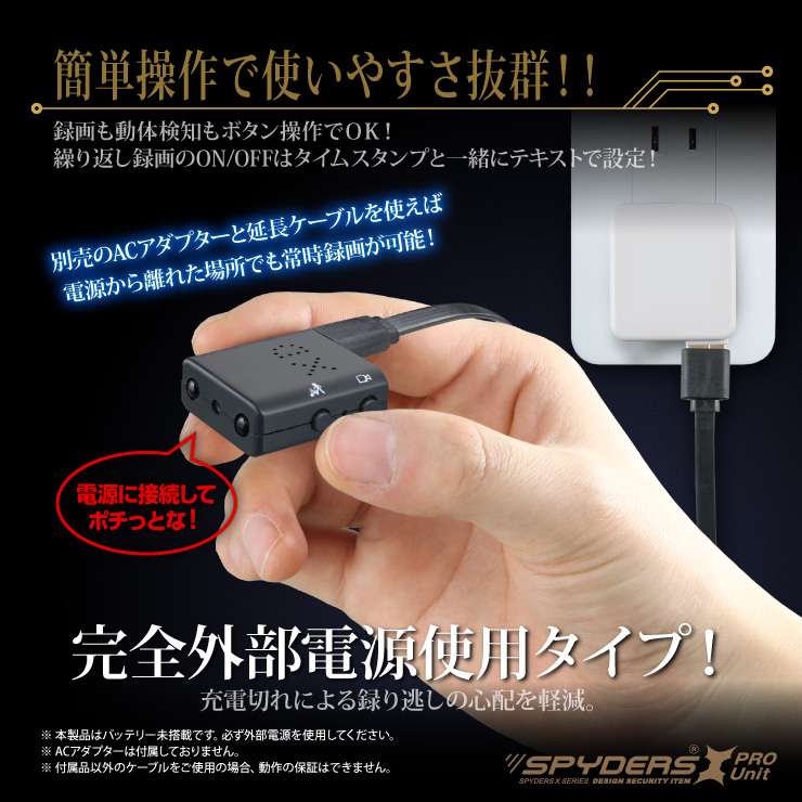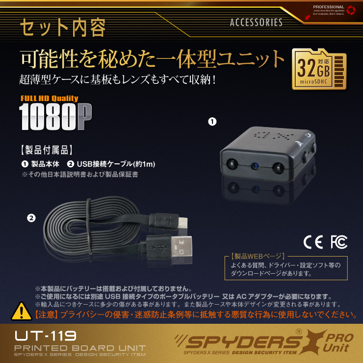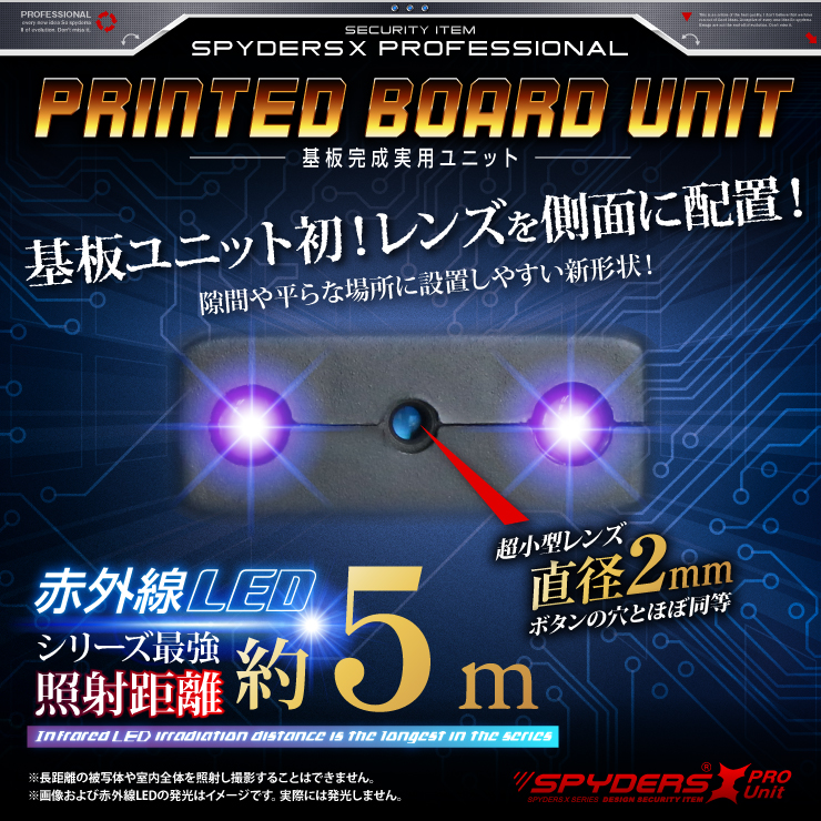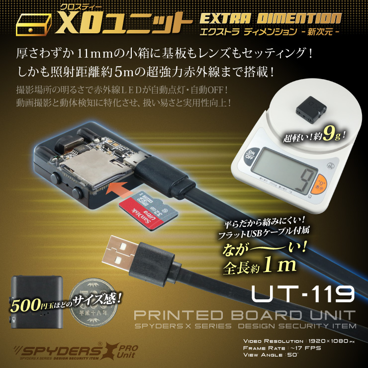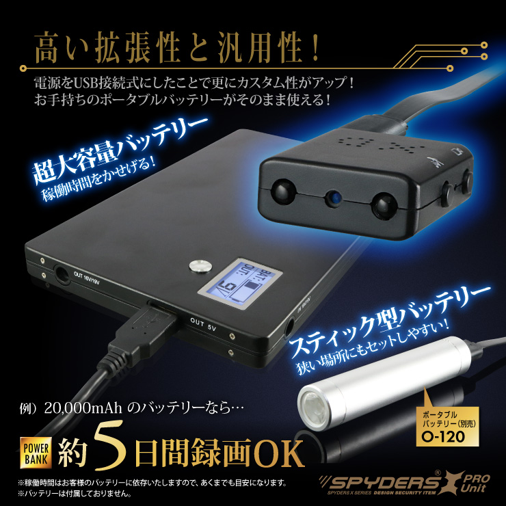小型カメラ 自作 基板完成実用ユニット スパイカメラ スパイダーズX PRO (UT-119) 1080P 強力赤外線 モバイルバッテリー接続