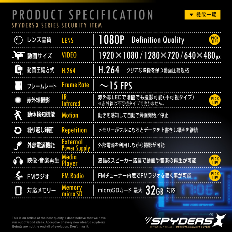 ◎業界最大の品揃え!スパイアイテム全300種以上!小型カメラのパイオニアブランドSPYDERS-X!