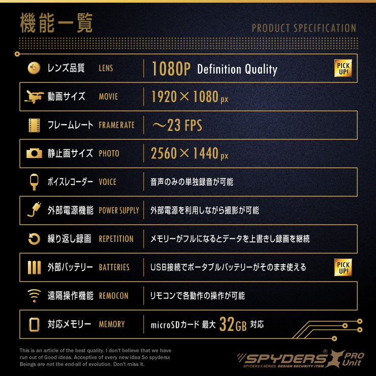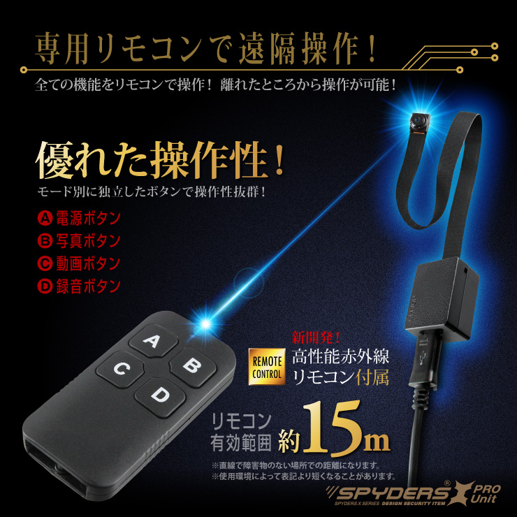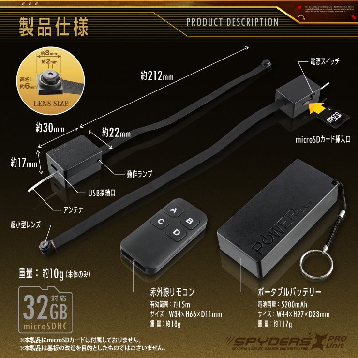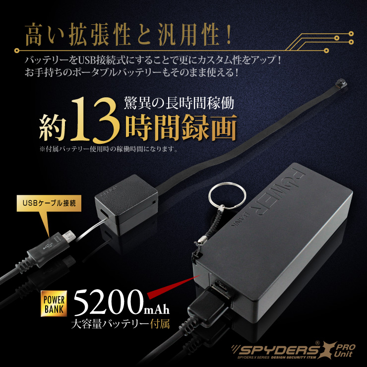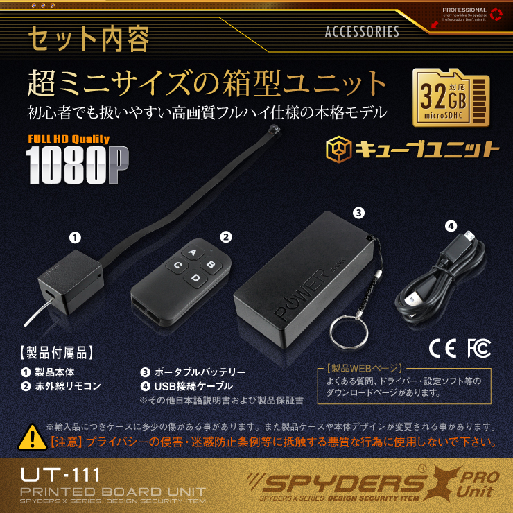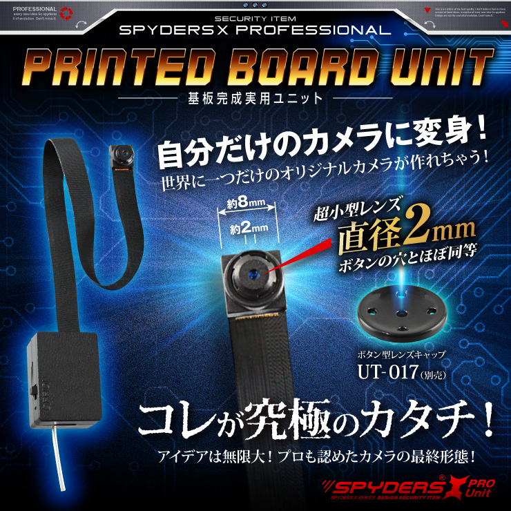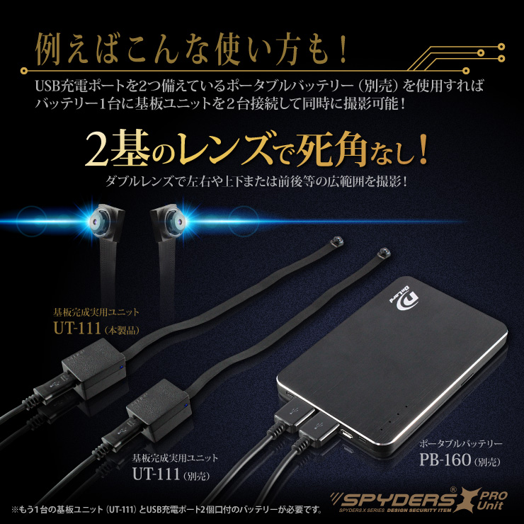 小型カメラ自作キット 基板完成実用ユニット スパイカメラ スパイダーズX PRO (UT-111) 1080P ポータブルバッテリー接続 長時間録画