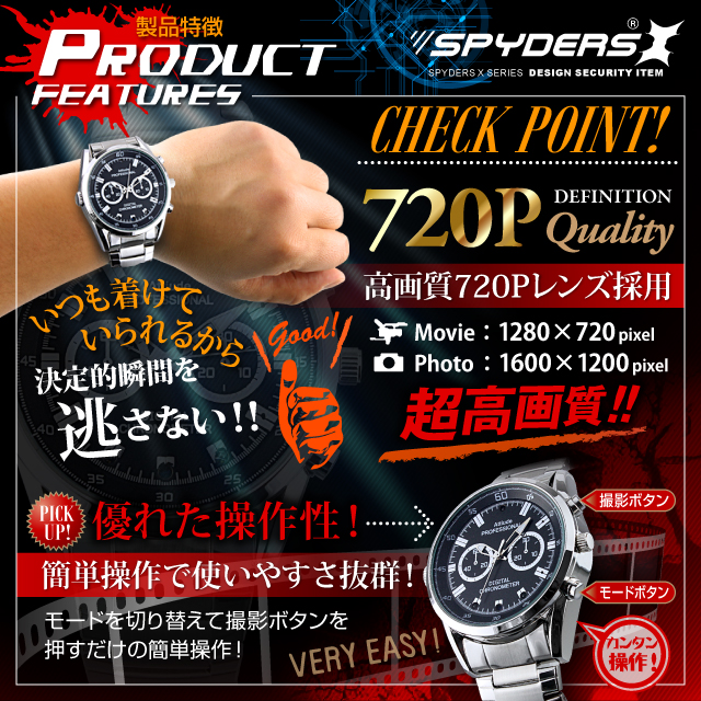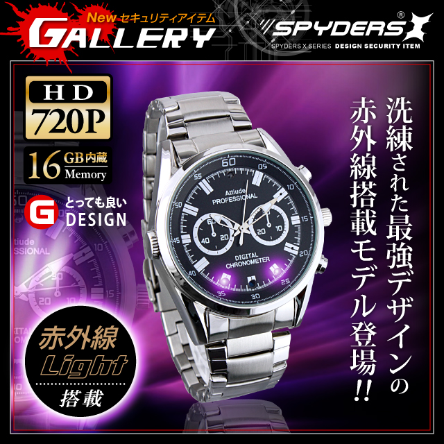 腕時計型カメラ 小型カメラ スパイダーズX (W-790)スパイカメラ 赤外線ライト 16GB内蔵