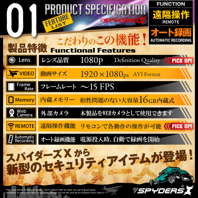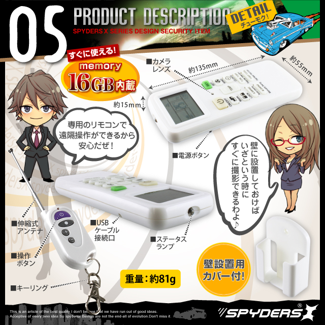 エアコンリモコン型カメラ 小型カメラ スパイダーズX (M-924)スパイカメラ フルハイビジョン 16GB内蔵