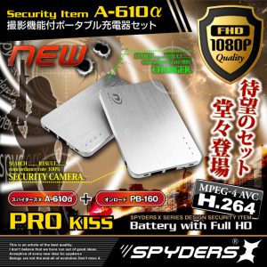 充電器型カメラ ポータブルバッテリー 小型カメラ スパイダーズX (A-680B) ブラック スパイカメラ 赤外線 長時間録画