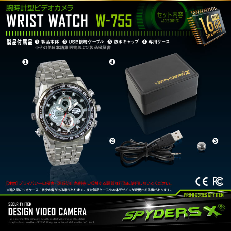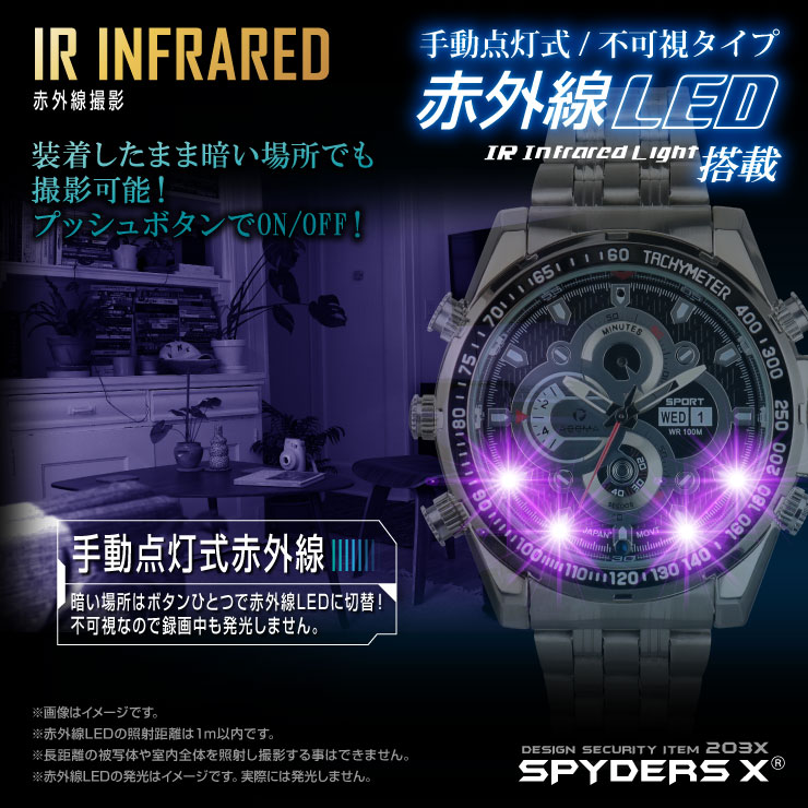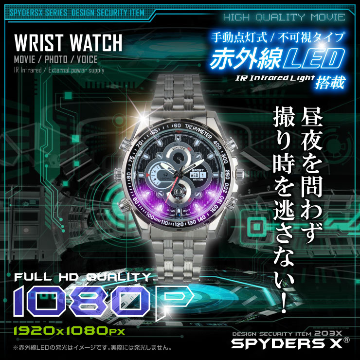 腕時計型カメラ 小型カメラ スパイダーズX (W-755)スパイカメラ 赤外線 フルハイビジョン