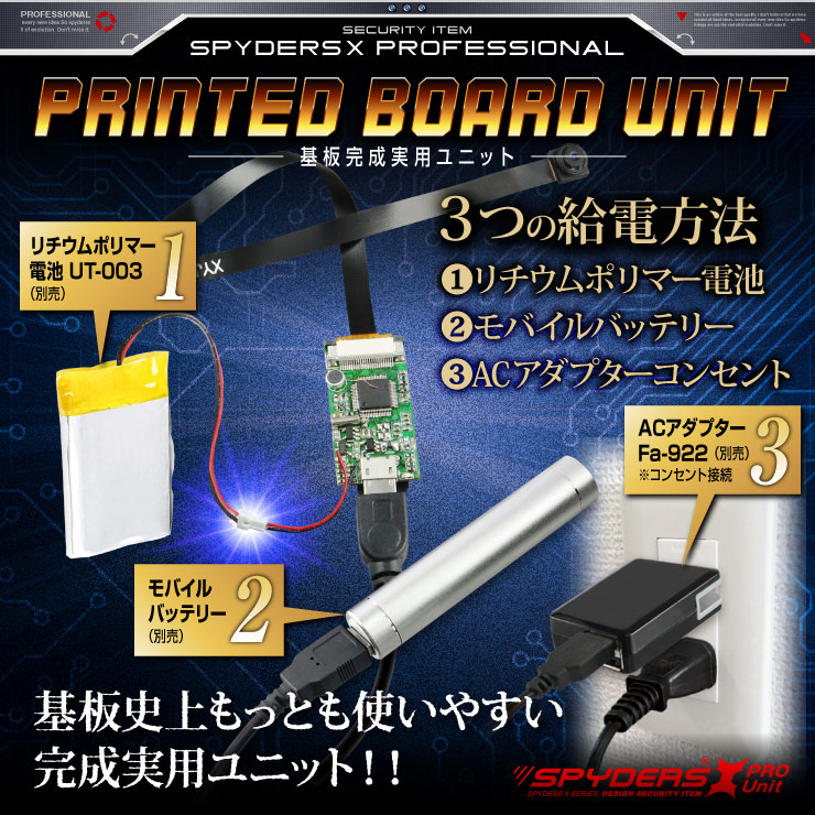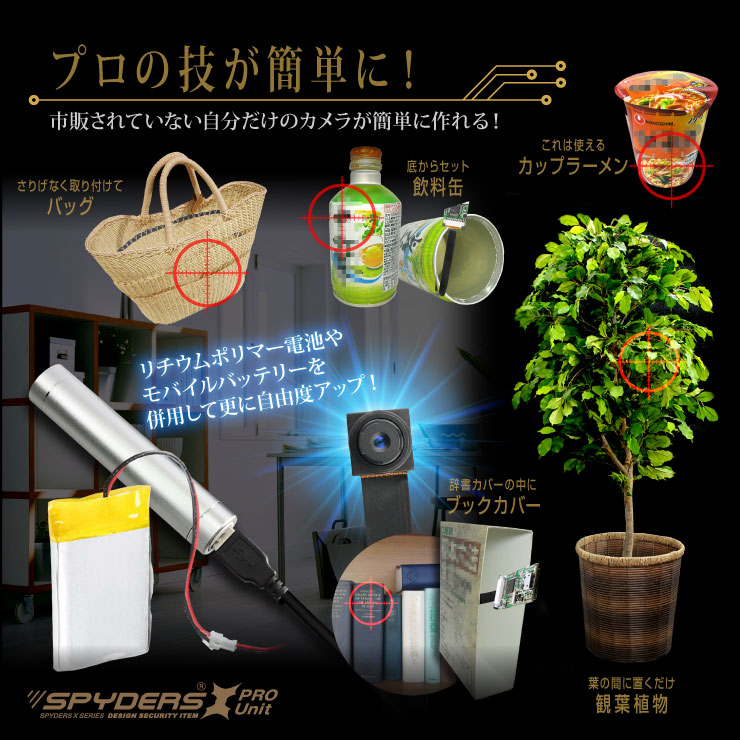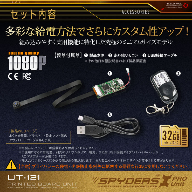 小型カメラ 自作 基板完成実用ユニット スパイカメラ スパイダーズX PRO (UT-121) 1080P マルチ給電