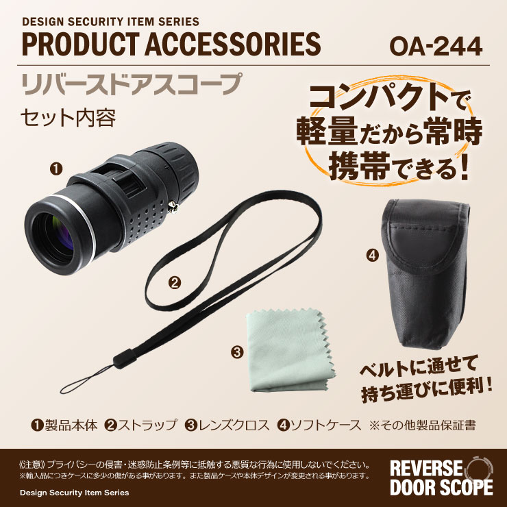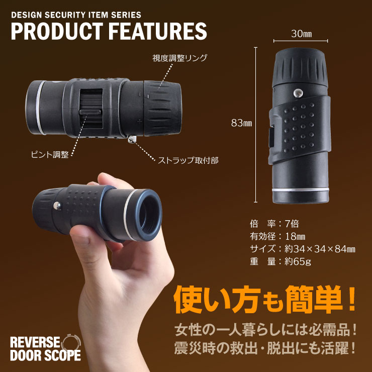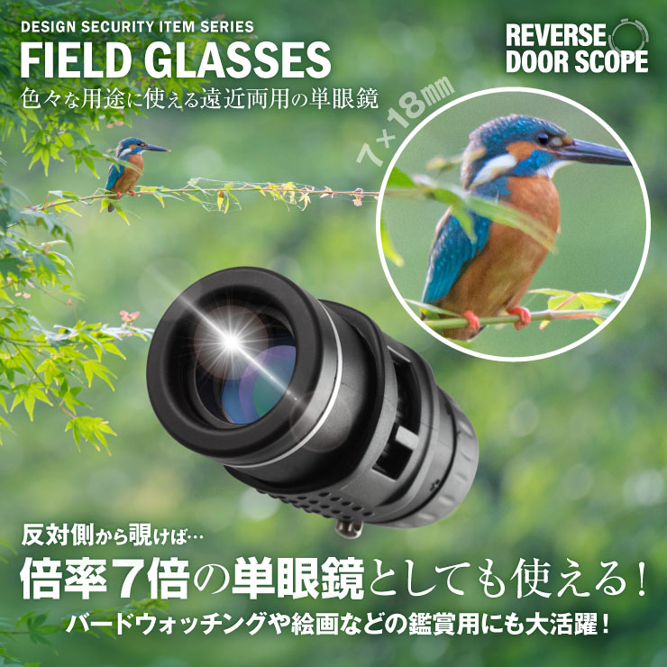 リバースドアスコープ 遠近両用単眼鏡 7倍 18mm (OA-244) ドア覗き穴から侵入者を外から確認!アウトドアや絵画鑑賞にも!