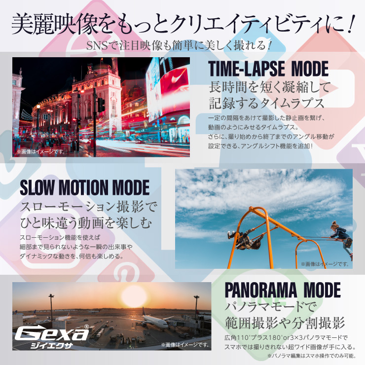 ●タイムラプスやスローモーション撮影も簡単設定!SNSで注目映像を楽しく美しく撮れる!