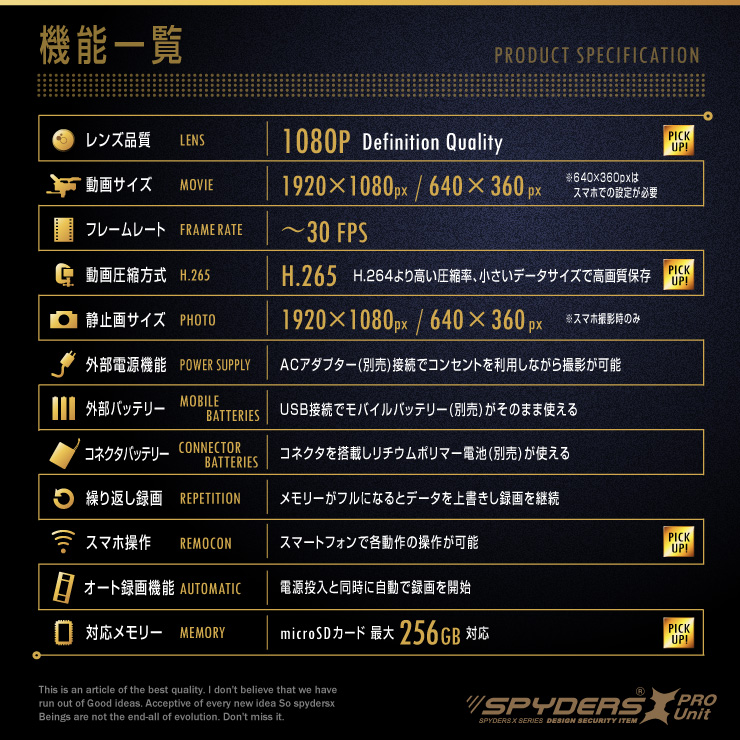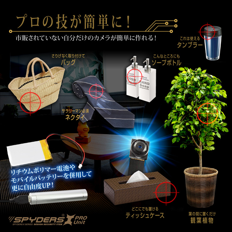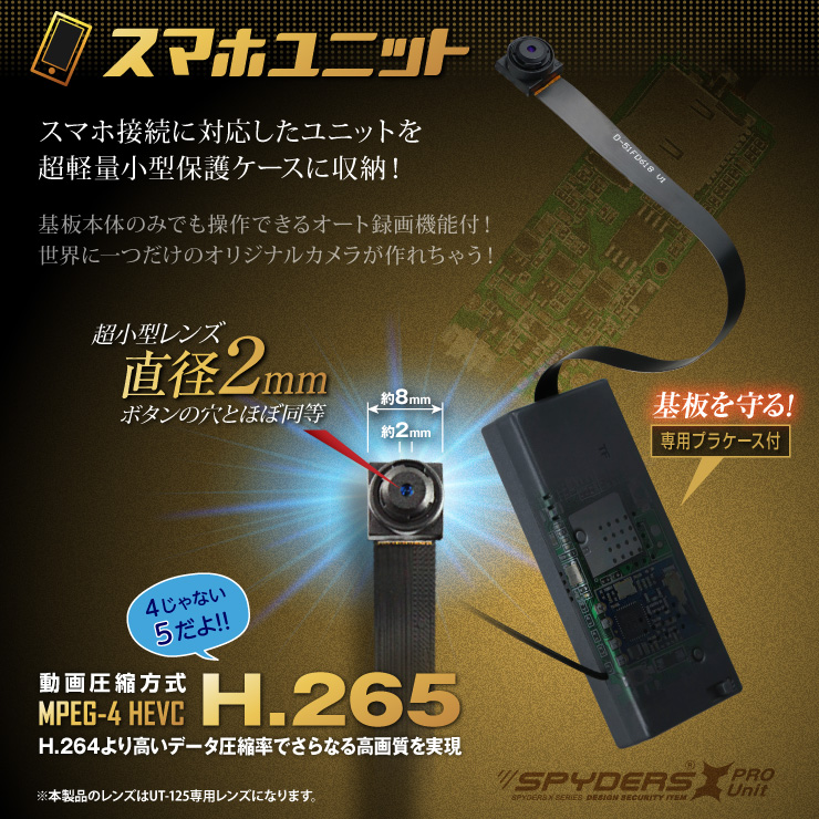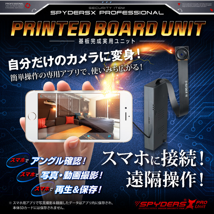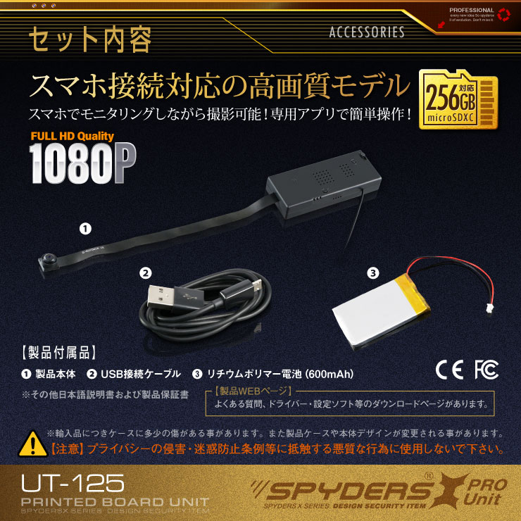 スパイダーズX PRO 小型カメラ 基板完成実用ユニット 防犯カメラ 高画質 1080P H.265 スマホ操作 256GB対応 スパイカメラ UT-125