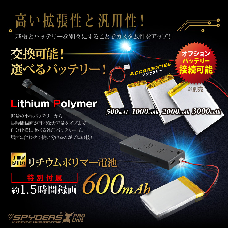 ●マイクロコネクタ搭載でいろんなサイズのリチウムポリマー電池が使える!