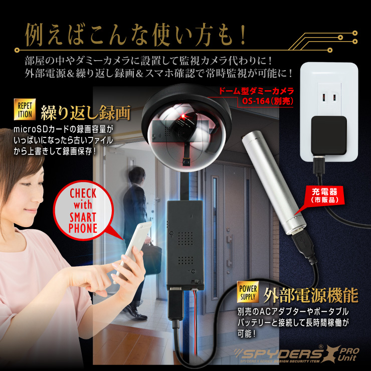 【6】外部電源+繰り返し録画機能付!別売のACアダプター接続で常時24時間録画にも対応!