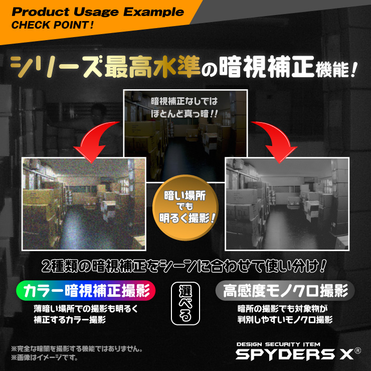 【6】暗所の撮影でも対象物が判別しやすい高感度モノクロ撮影!