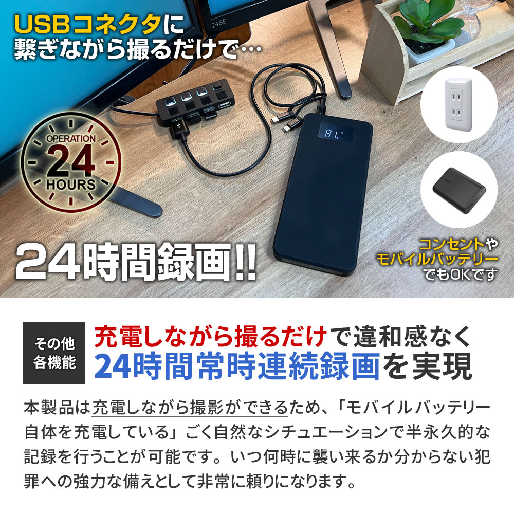 [mc-mc139][モバイルバッテリー型] スマホで遠隔操作 25時間連続録画 夜間撮影も対応